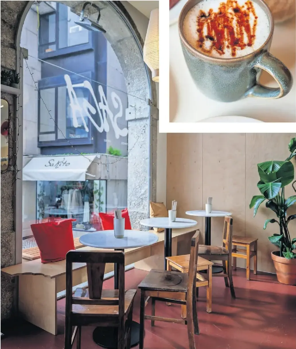 Mas como nem sem­pre o que ape­tece são bola­chas, na mon­tra da Saga cabe ainda uma sec­ção dedi­cada ao che­e­se­cake basco e ao tira­misu. “As minhas sobre­me­sas pre­fe­ri­das”, revela Patrí­cia. Rolos de canela, salame de coo­kies e uma sele­ção de san­des fei­tas com focac­cia caseira rema­tam a oferta, e podem ser con­ju­ga­das a qual­quer hora do dia com uma bebida de café, ou com um chai latte.